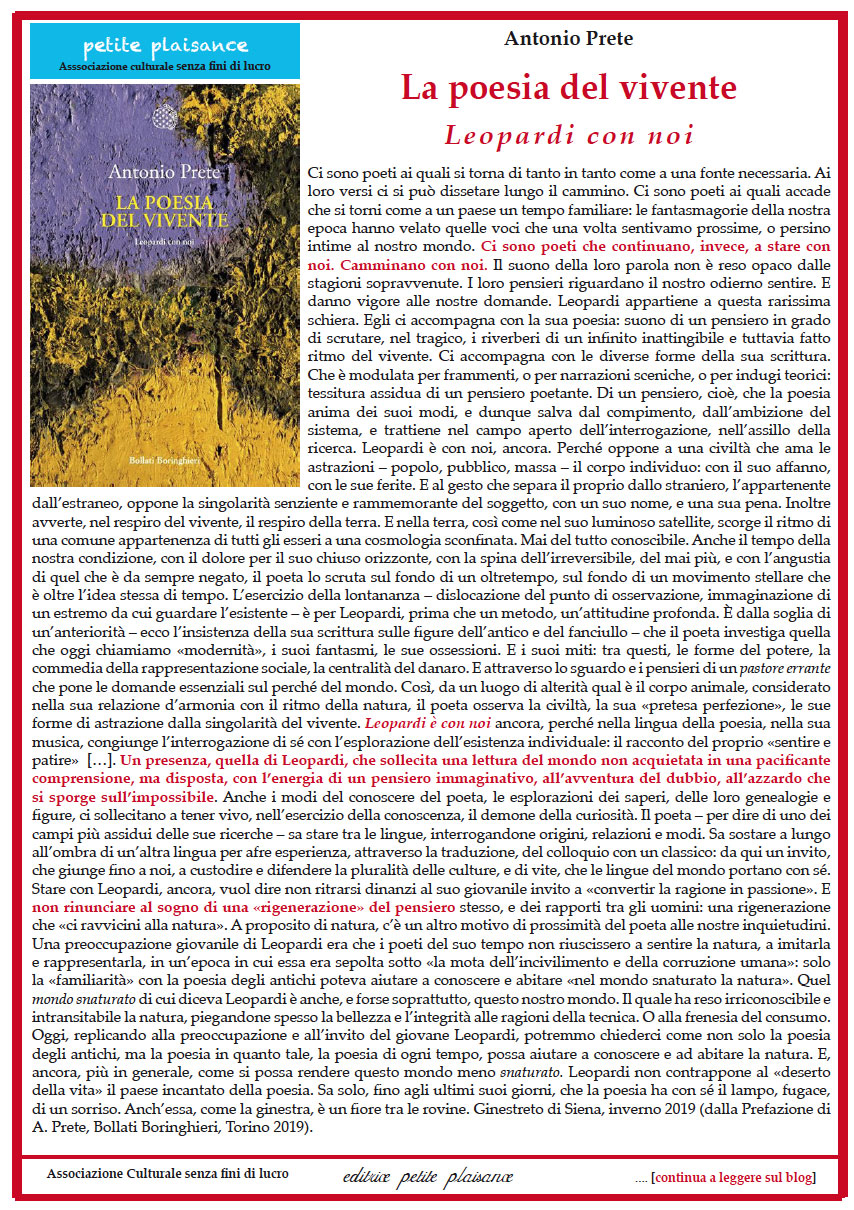 Nella sua introduzione, l’autore sostiene, tra le altre cose, che “cultura è come si sta al mondo” (p. 11), ossia un sapere che aiuta a realizzare nella maniera migliore la propria umanità. Nei miei rapporti pluriennali con Riolo, non frequenti ma rimasti intatti nel tempo, ho potuto constatare sempre, appunto, questa postura umana di disponibilità e correttezza, che emerge in modo nitido anche dalle pagine di questo libro. Per tale motivo sono lieto che proprio Petite Plaisance sia stata il “luogo editoriale” da lui prescelto per il presente volume, il quale sintetizza fatiche di anni, essendo il coronamento di una lunga attività didattica, per quanto non condotta nei contesti consueti (ossia Licei ed Università). Conoscendo Riolo – persona dotata di interessi culturali vastissimi, come dimostra, a mero titolo esemplificativo, l’ottimo volume scritto con Massimiliano Lepratti Un mondo di mondi. L’avventura umana dalla scoperta dell’agricoltura alle crisi globali contemporanee (Asterios, 2021) –, questo libro non sarà per lui un punto di arrivo, ma di partenza per ulteriori riflessioni, le quali auspico non mancheranno, per la passione, nonché per la lucidità, con cui riesce ad analizzare la socialità umana ed insieme, come in questo caso, i grandi capolavori della letteratura mondiale.