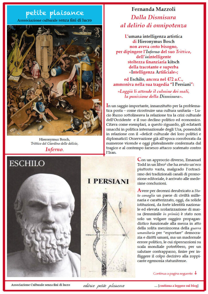 – è chiamato a considerare gli oligarchi dell’economia sempre avidi di sfruttare il lavoro, il territorio, i mercati, e i tecnoscienziati intenti a manipolare le specie viventi, per quello che in realtà sono: gli artefici consapevoli della distruzione dell’umanità dell’uomo;