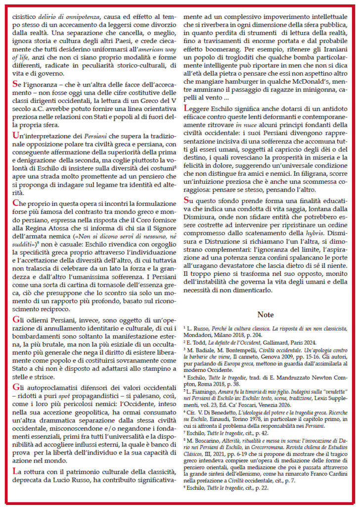 «Questo saggio è pur sempre un messaggio in bottiglia di un membro della generazione “perduta” del 1968. E dico “perduta” perché si è persa, in parte non per sua esclusiva responsabilità, in una modernizzazione post-borghese ed ultra-capitalistica che non poteva capire per carenza di categorie concettuali adeguate, dal momento che la generazione precedente, che a mio avviso porta le maggiori responsabilità, l’ha paralizzata ed inchiodata a dilemmi ed a contrapposizioni ormai obsolete, come quella fra Fascismo ed Antifascismo, contrapposizione “nobile” fra il 1919 ed il 1945, ma del tutto insensata e senza oggetto dopo, almeno in Italia (altro è il discorso per Portogallo, Spagna e Grecia). La stragrande maggioranza della mia generazione ha semplicemente perso ogni capacità di dedizione nell’adattamento ad una realtà quotidiana percepita come non modificabile. Una parte consistente è passata ad un diverso campo, e cioè dal Comunismo all’Americanismo, mantenendo inalterato l’atteggiamento intollerante, assolutistico e dogmatico. Una piccolissima parte è rimasta fedele agli ideali della giovinezza. Se poi chi scrive lo ha fatto in modo lucido o ottuso, ebbene, questo non posso certamente dirmelo da solo, ma spetta esclusivamente alla più completa sovranità critica del lettore».[7]