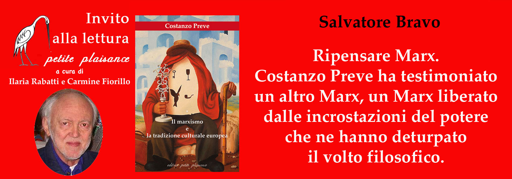 Costanzo Preve, Il marxismo e la tradizione culturale europea. Seconda edizione, riveduta e corretta. ISBN 978-88-7588-327-0, 2021, pp. 304, formato 140×210 mm., Euro 25 – Collana “Divergenze” [76]. In copertina: R. Magritte, Il liberatore, 1947, olio su tela, Los Angeles County Museum of Art.
